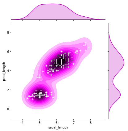 g.plot_joint(plt.scatter, c = "w", s = 30, linewidth=1, marker="+")