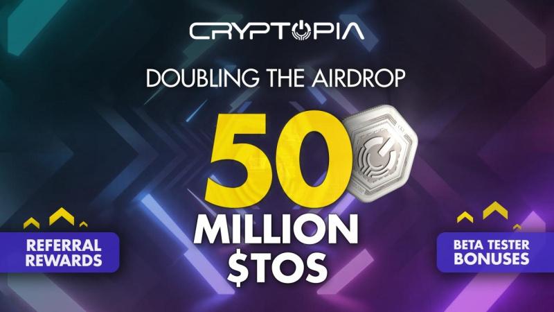 \ Cryptopia understands that more people means a diluted prize pool. To show Cryptopia gratitude for its growing community’s overwhelming support, Cryptopia is thrilled to announce a doubling of the Airdrop allocation, pumping it up from a cool 25 million $TOS to a whopping 50 million $TOS. This translates to a prize pool value jump from $87,500 to $175,000 USD. Even with new recruits joining in on the fun, this ensures every Airdrop participant gets their fair share of the bounty.