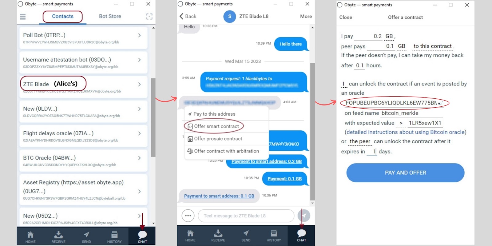 \ On the other hand, you can easily set up your own personal oracle (data feed) for your specific use case, or let it be created by a close party, like a member of your family or coworker. This way, the oracle can offer any personalized information you can count on to make transactions among your inner circle, or with business partners. In Obyte, it’s possible to create your own oracle in a few minutes, without coding or technical steps.