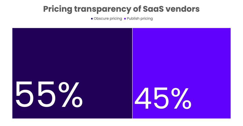 • 55% of SaaS vendors conceal pricing, akin to buying a car blindfolded.