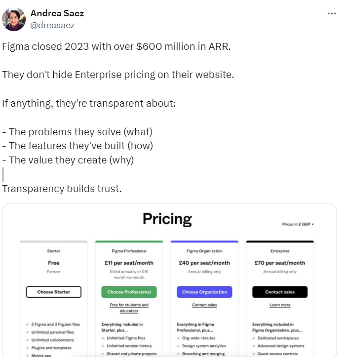 • Successful cases like Zapier and Figma highlight revenue growth from transparent pricing.