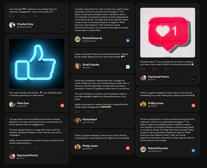 \ You should try diversifying it between Social media and G2. In the end, build a big feed that looks like that.