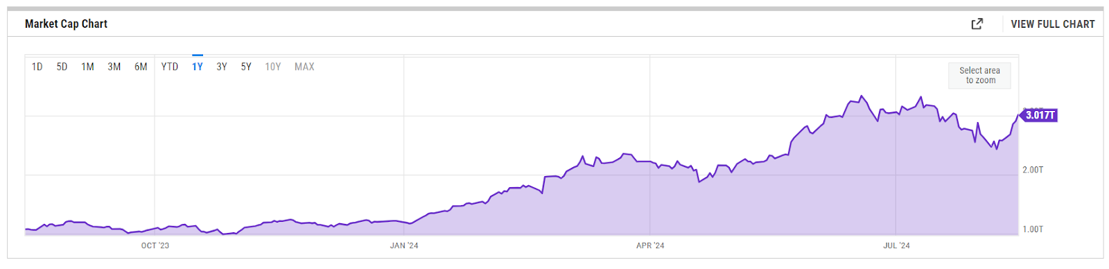 \ Due to this demand, Nvidia has been able to surpass earnings forecasts and greatly increase its market valuation. Surprisingly, in mid-2024, it temporarily reached a valuation of $3.34 trillion.