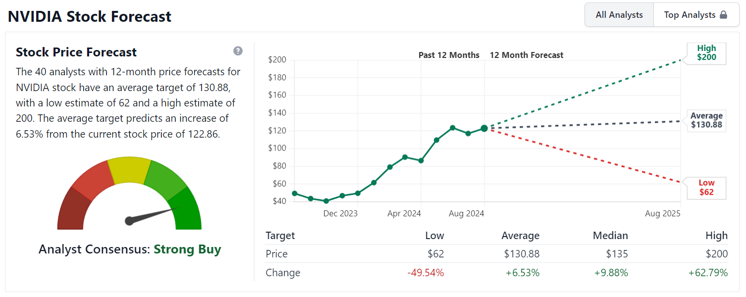\ More precisely, the average 12-month price target among Wall Street analysts is around $130.88, with projections ranging as high as $200.