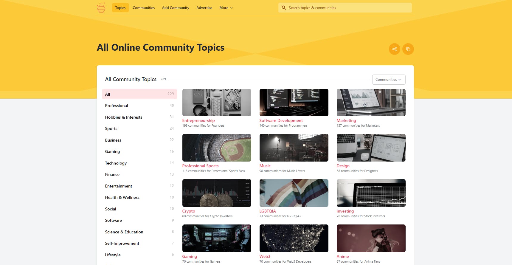 A directory of online communities on various topics, which helps founders find relevant groups to share and learn from.