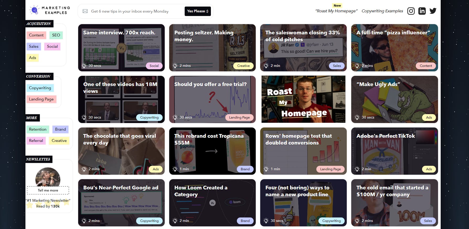This tool provides real-world marketing examples to help indie hackers craft successful campaigns based on proven real-life strategies.