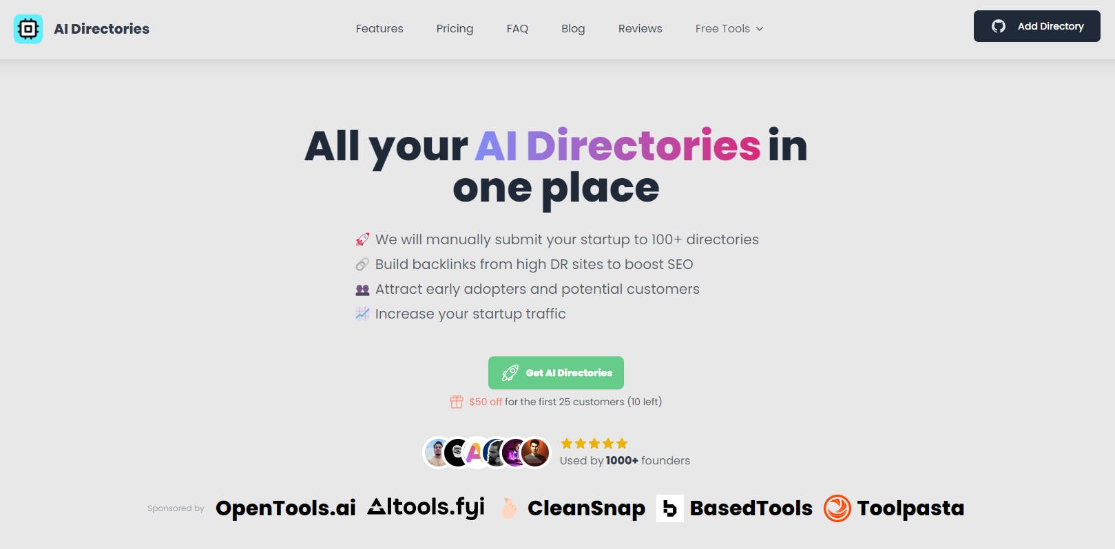 AI Directories offers to manually submit your product on a curated list of launch sites specifically focused on AI and tech products to increase your startup traffic.