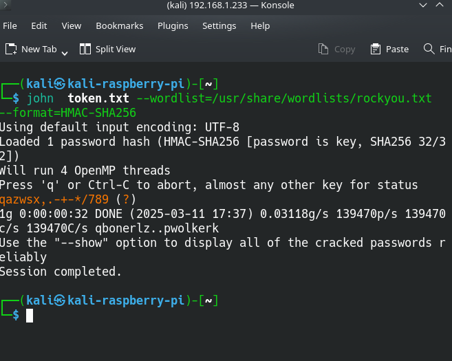 \ Note: If the key did not belong to the wordlist, we could not crack it.