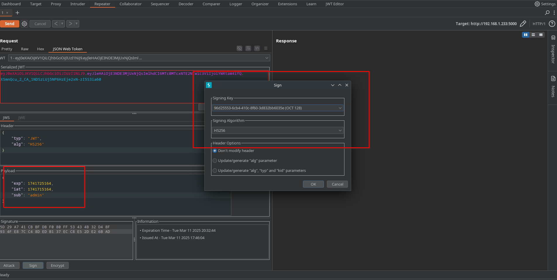 VAmPI is a small flask app developed by one ere0s made for running in both vulnerable and strengthen mode. If the app is run in vulnerable mode, it can be deployed with a predictable secret key for signing the JWT token it returns. For demonstration purpose I did the following: