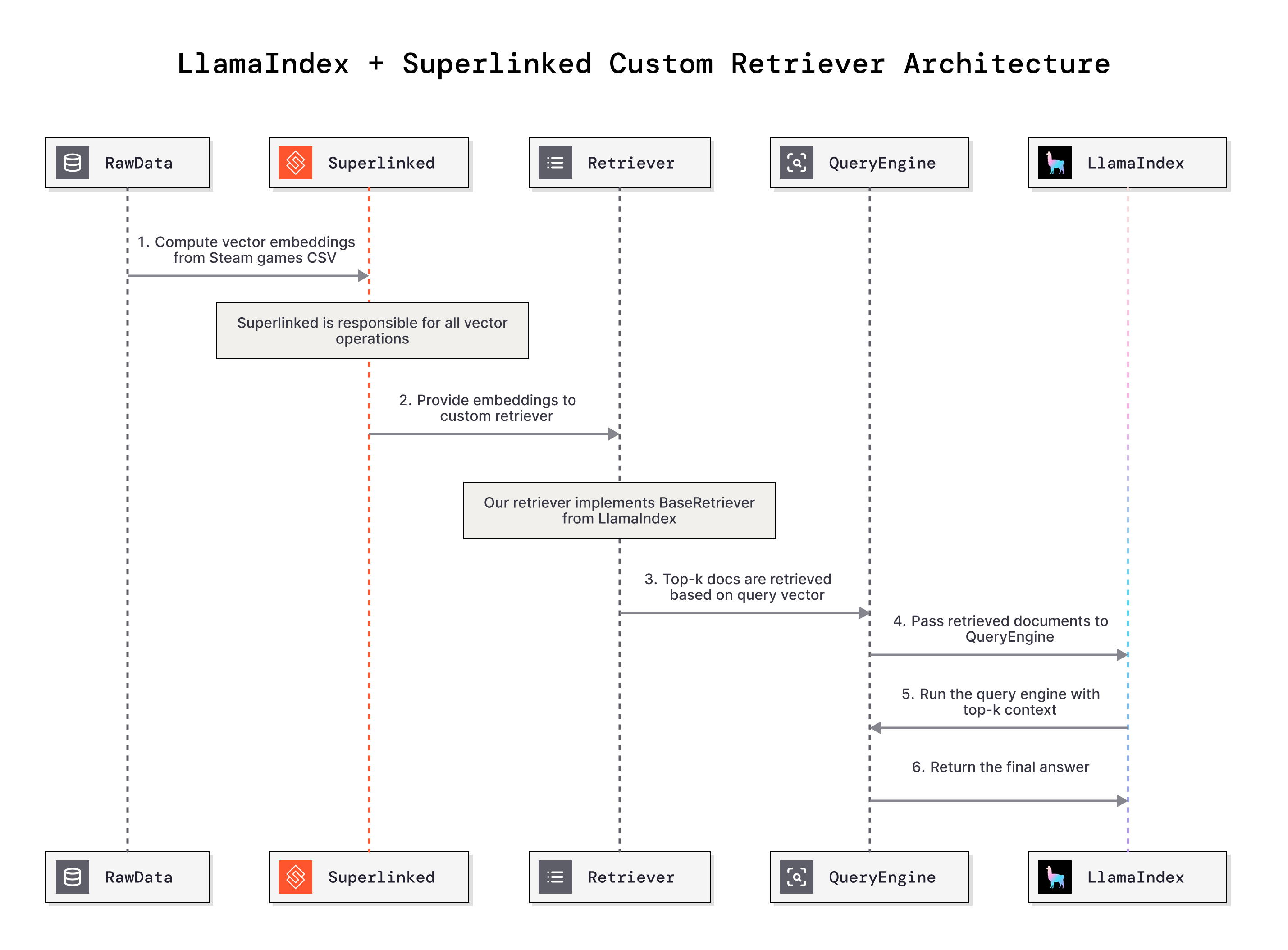 Before diving into our Superlinked implementation, it's crucial to understand how LlamaIndex's custom retriever architecture works and why it's so powerful for building domain-specific RAG applications.