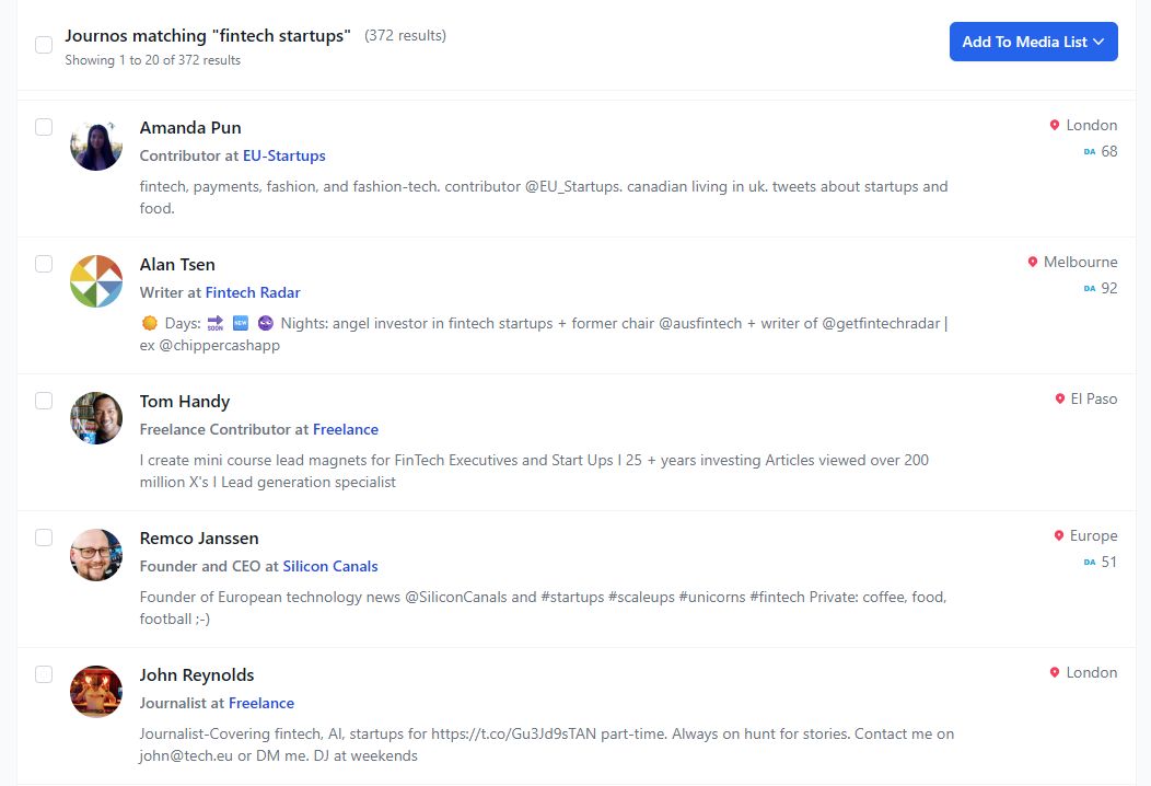 - JournoFinder Full: $189/month - Media database access, advanced filtering and more alerts (1 user)