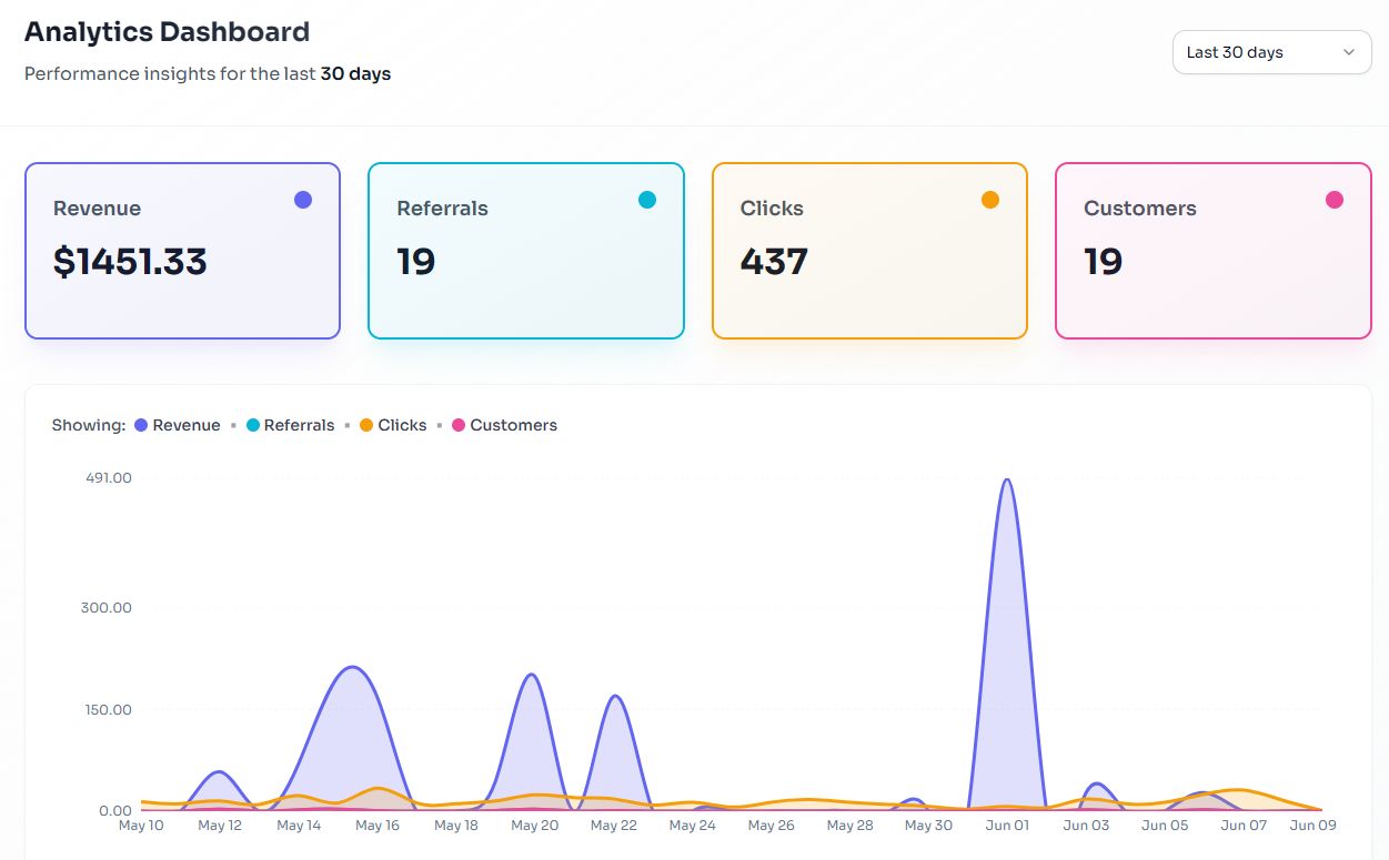 It’s completely free until you generate $1,000 per month in affiliate revenue, making it risk-free for small SaaS companies just starting their affiliate programs.