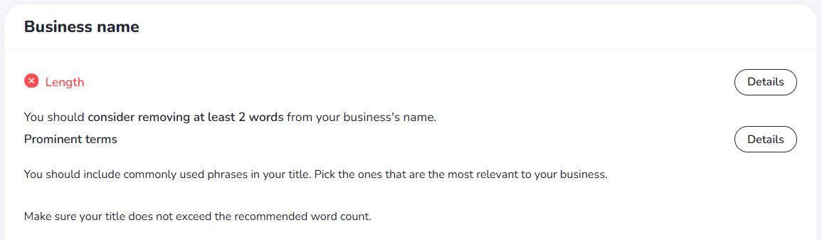It also looks at how many review, images, and posts you have - and lets you know if you need to be intentional about adding more.