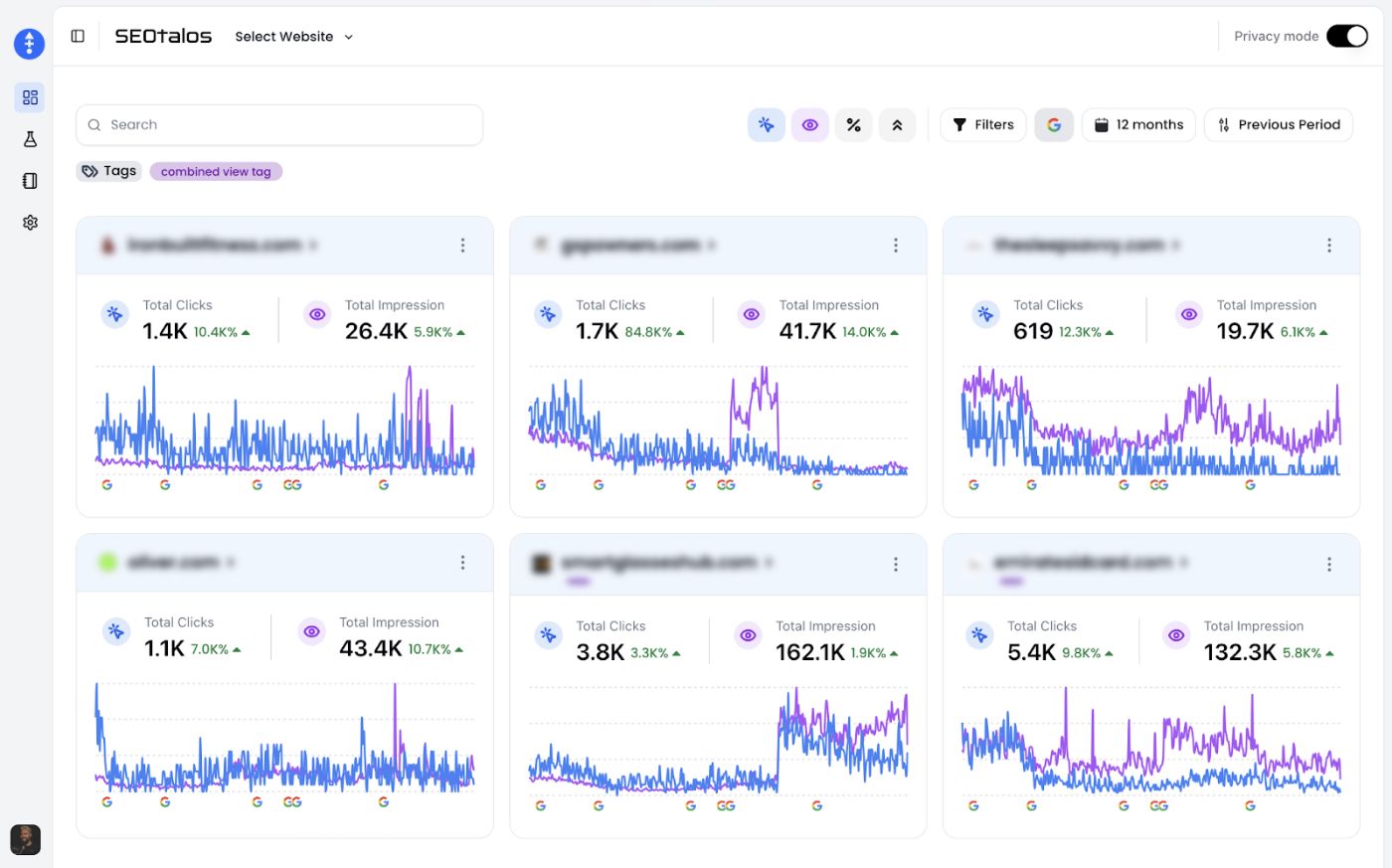 If your business has multiple websites and you’re frustrated with how slow it is to extract useful data from Google Search Console across multiple profiles, SEOTalos is for you.