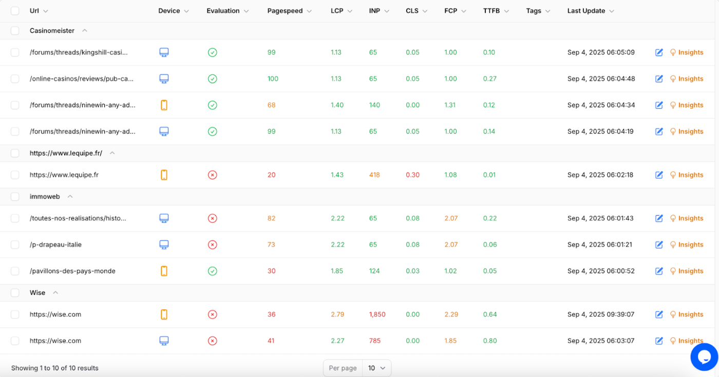 The site speed monitoring tracks your performance across different devices and connection speeds, which is crucial since page load speed directly impacts both search rankings and conversion rates, as this study from Portent found.