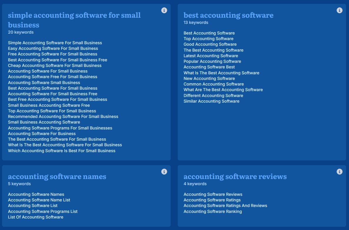 Once you have your keyword list, Answer Socrates groups related terms so you can see exactly which topics to cover in a single article versus which questions deserve their own dedicated pages.