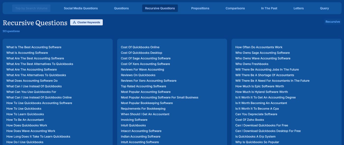 You can take it a step further with the recursive search feature that finds a deeper level of related queries, often including branded searches that other tools don’t find from a general seed keyword.