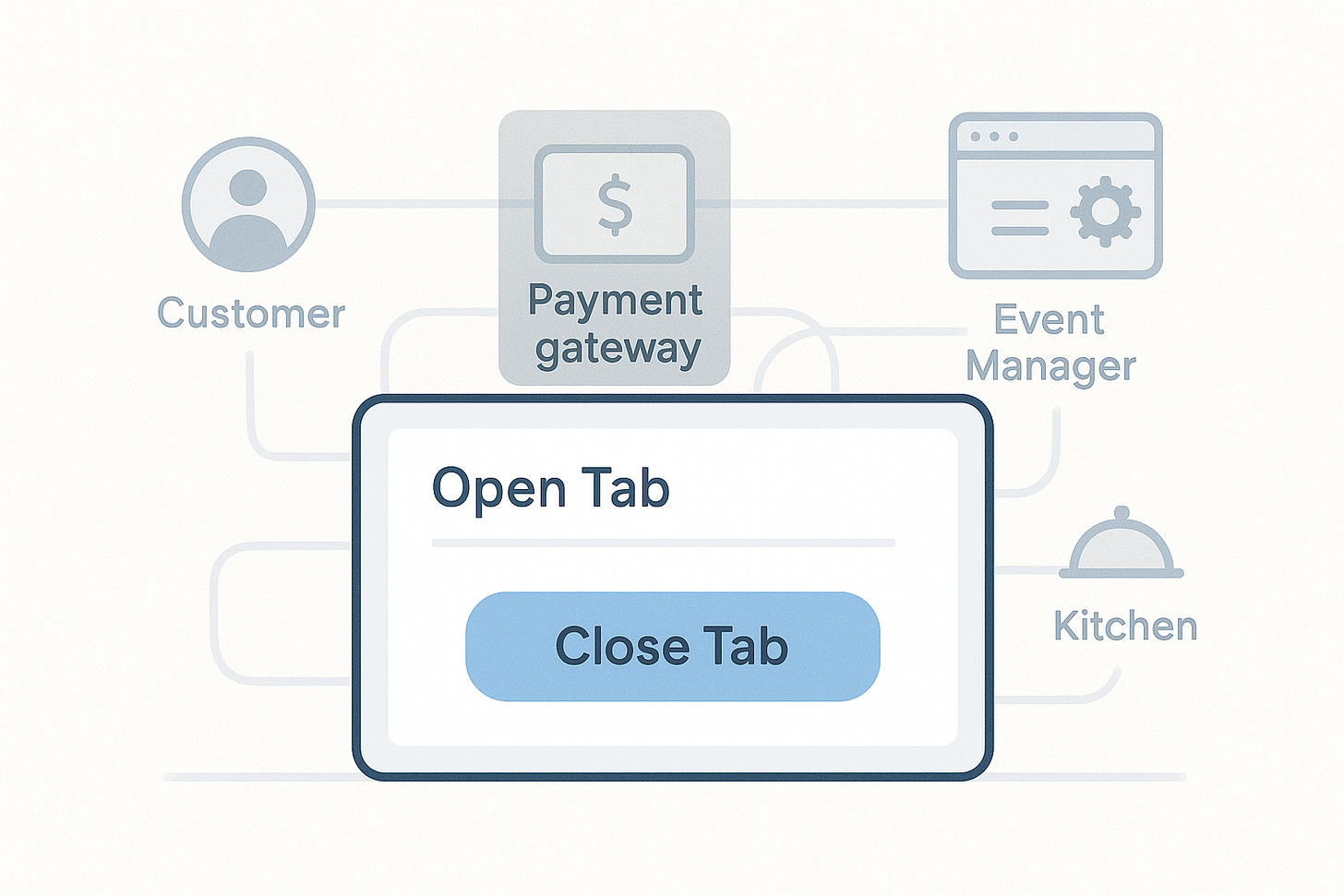 We’ve all seen some version of an open tab. You walk into a bar, order a drink, and the bartender asks, “Want to keep the tab open?” It’s the same idea in premium suites at stadiums, cruise lounges, or even co-working cafés : keep one ongoing bill open, add orders to it throughout the event, and close it at the end.