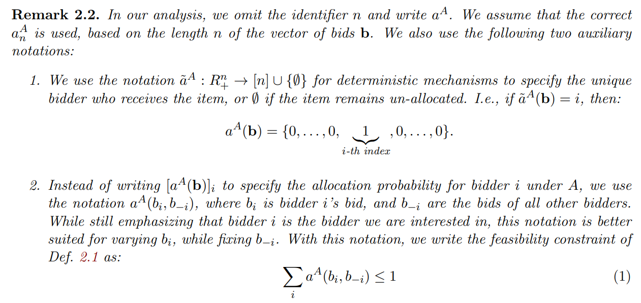 \ Throughout the text, we assume the basic auction properties hold. The only exception to it is in Appendix B where we explore removing the anonymity assumption.