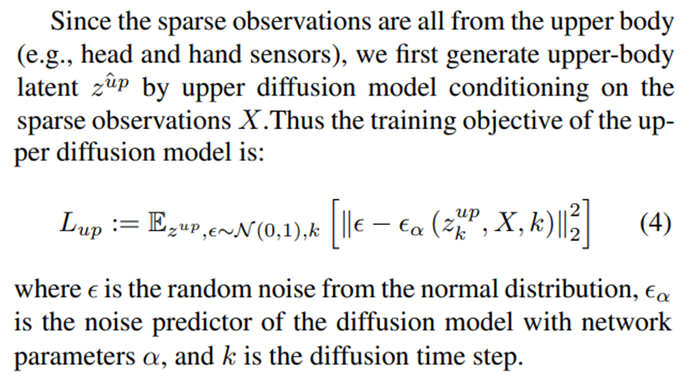 \ Although disentangling the full-body motions into upper and lower parts enhances effectiveness and efficiency for motion representation learning, it’s crucial to include the correlation between two body parts during generation. Otherwise, severe inconsistency would be witnessed in reconstructed full-body motions. To this end, we propose Stratified Motion Diffusion to sample upper-body and lowerbody latent in a cascaded manner with explicit considerations of the correlations mentioned above.