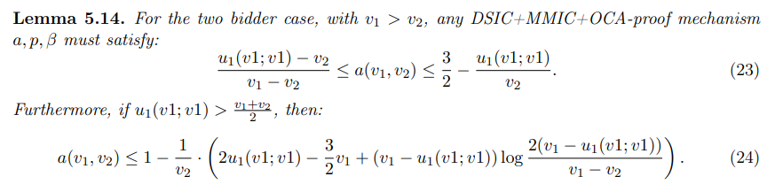 \ Furthermore, for the case of two bidders, we can show a useful upper and lower bound on how much the function should “favor” the higher bidder: