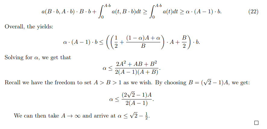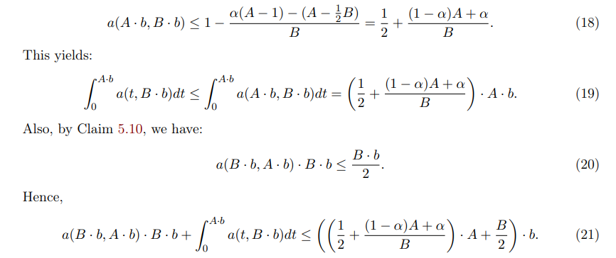 \ Notice that this is the left-hand side of the Lemma 5.12 where we consider the bids B · b, A · b. We can thus repeat the way we developed Eq. (14) (for the case of the bids A · b, A · b) and, by considering that the miner omits the bid B · b, get: