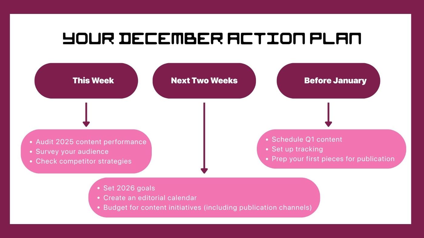 Most tech companies will start 2026 with the same marketing strategy that failed them in 2025. Don’t be one of them. This guide breaks down 10 practical year-end moves: audit your content ROI vs ad spend, build genuine thought leadership (not product pitches), create a strategic content calendar, identify where your audience actually discovers content, kill underperforming channels, analyze competitor strategies, survey your audience, calculate brand authority metrics, prepare for AI-powered search, and set measurable goals. The key insight? Great content only works if it reaches the right audience—which means publishing beyond your own blog to platforms where your buyers already spend time.