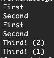 With the above code, we’re killing the first timer before it executes the code, so the string Third! (1) won’t be printed out.